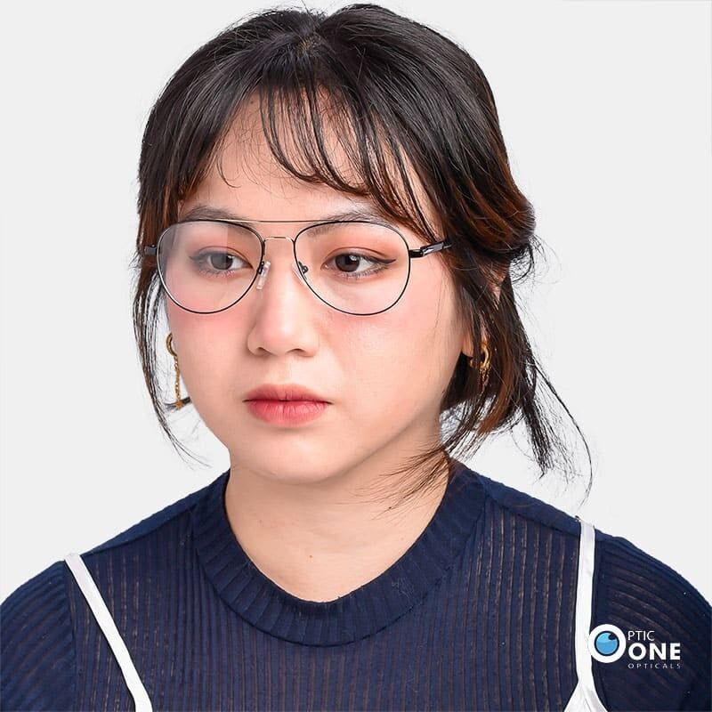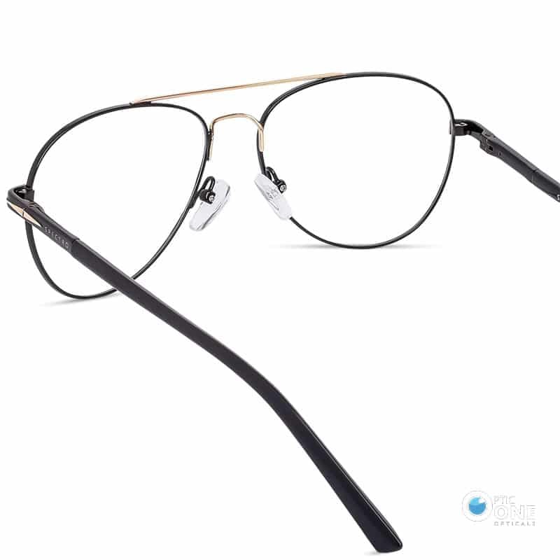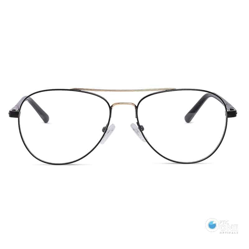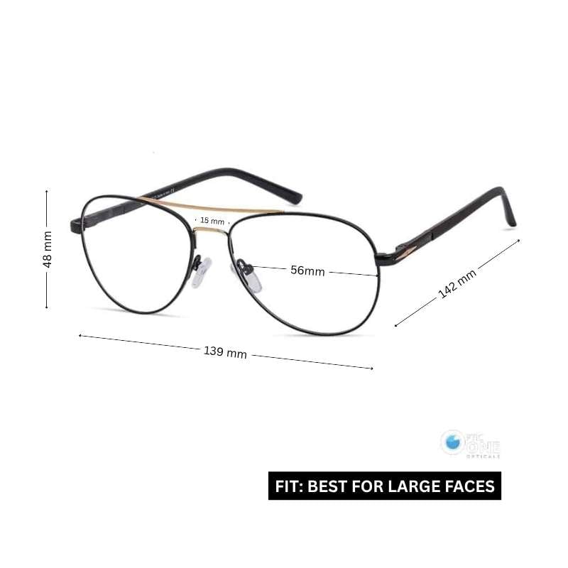 Aviator style eyeglasses for men and women are the perfect blend of classic design and modern fashion. With a sleek black metal frame and a gold double bridge, these eyeglasses stand out as both fashionable glasses and a daily go-to choice.