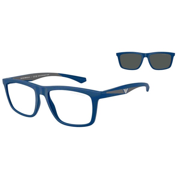 Emporio Armani EA4235 Matte Blue Clip-On Glasses – Large 55mm Bio-Based Square Frame Emporio Armani EA4235 Matte Blue Clip-On Glasses – Large 55mm Bio-Based Square Frame