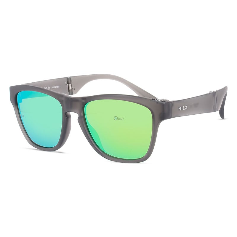 October 21, 2024Hilx Unfold Unisex Foldable Sunglasses Matte Gray Frame with Green Mirror Lenses