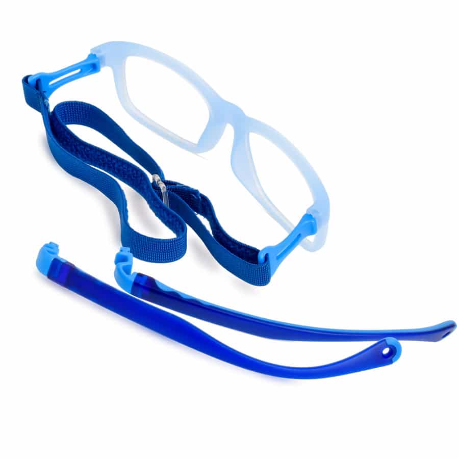 High quality hybrid kids glasses. Each pair comes with a long adjustable head-strap for active use and a pair of flexible arms, which can be interchanged.