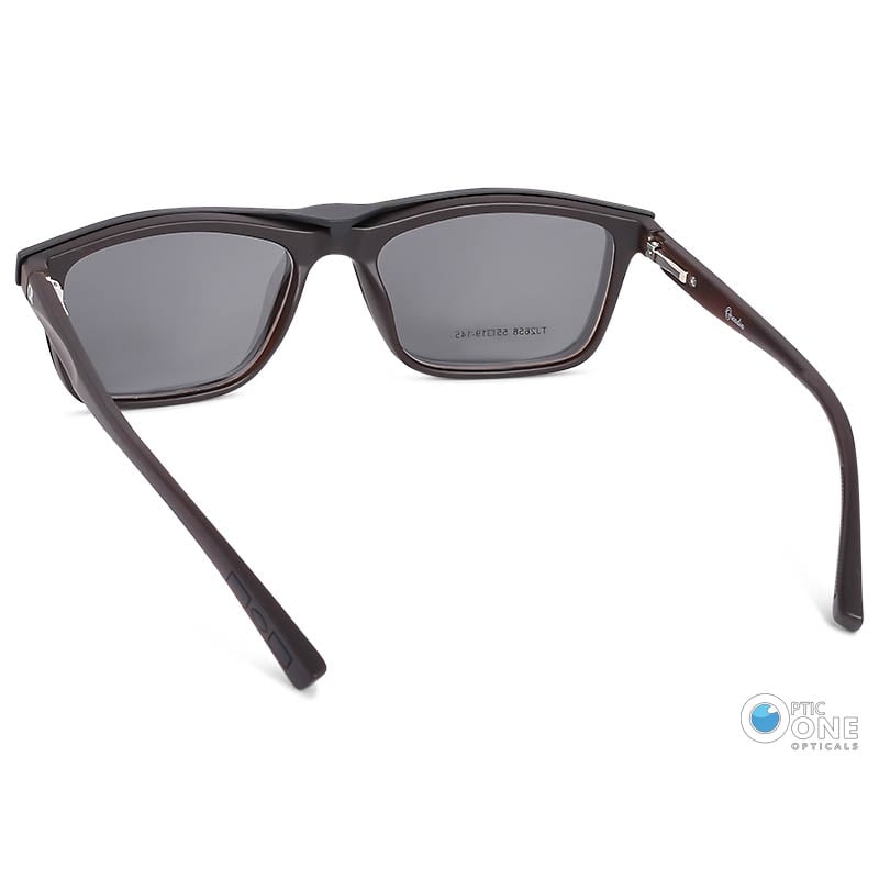 September 5, 2024Men’s Rectangular Brown Acetate Clip-On Glasses with Polarized Sunglass Attachment – Medium to Large Fit