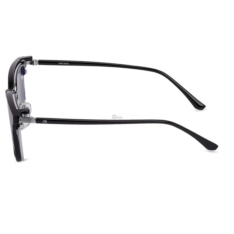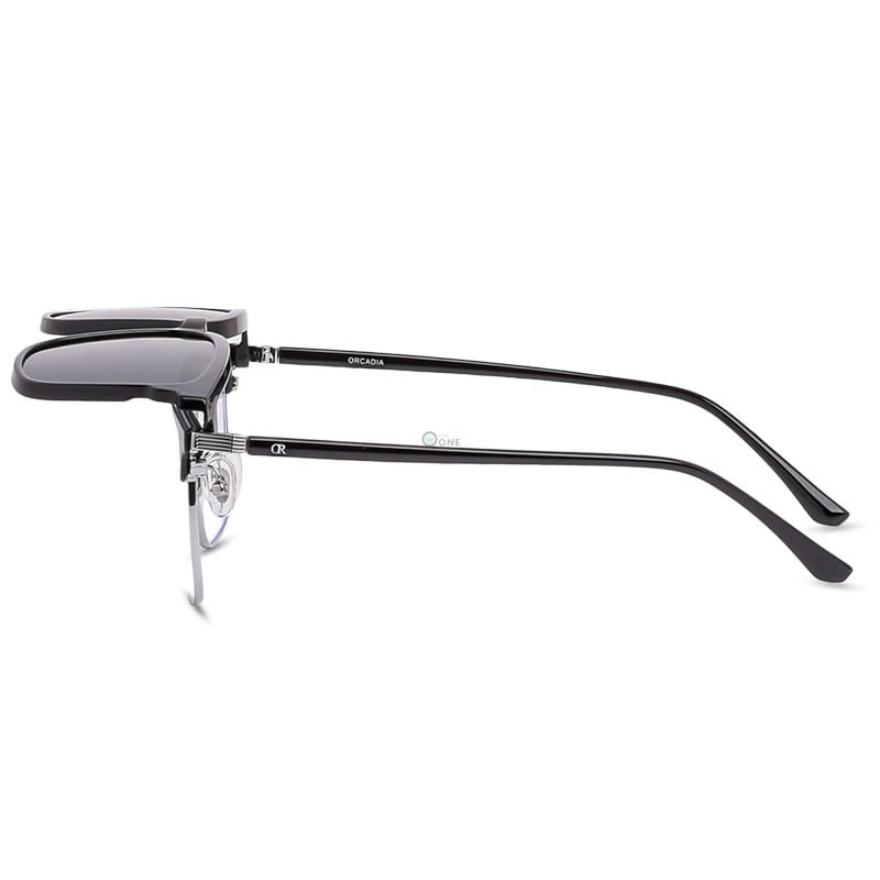 Channel a timeless intellectual aesthetic with these Orcadia Black & Silver Browline Clip-On Glasses. A definitive staple for the stylish gentleman, this frame modernizes the iconic 50s “Clubmaster” silhouette by combining a bold black acetate brow with refined polished silver metal rims and bridge.