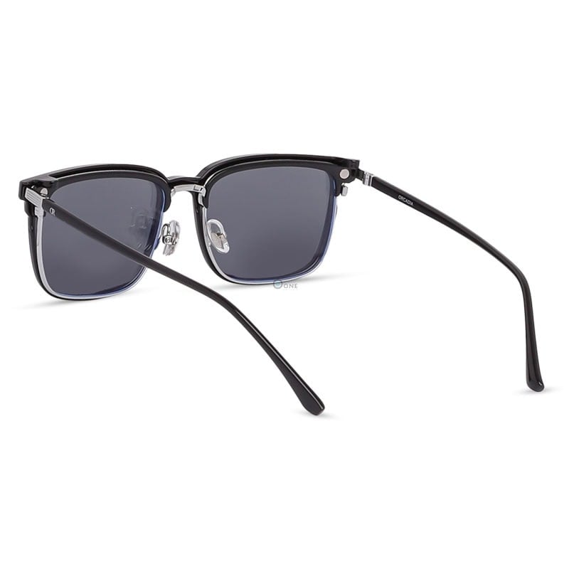 This 2-in-1 eyewear solution is engineered for versatility. The frame comes with a precision-fit magnetic polarized clip-on, instantly transforming your clear prescription lenses into dark shades without the weight or hassle of a double frame. The silver accents at the temple corners and bridge add a touch of luxury, making these glasses ideal for professional environments and formal wear.