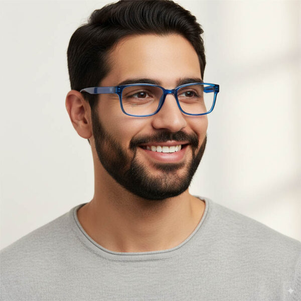 The transparent blue finish delivers a refreshing, modern style that stands out while still being easy to pair with professional or casual outfits. With a rectangular frame design, this model provides a sharp and structured look that complements men’s facial features.