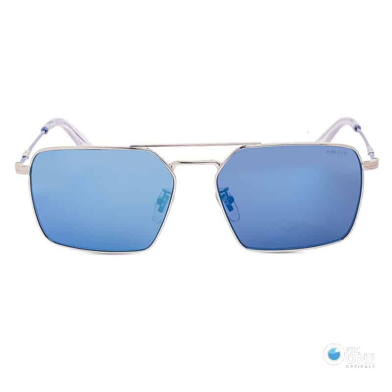 July 3, 2023Police Men’s Sunglasses SPLL07 Rectangle Thin Silver Frame & Blue Mirrored Lenses