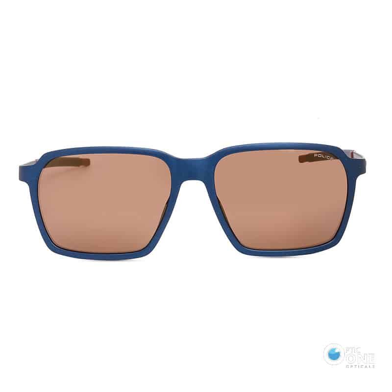 Police Solstice 5 SPLL16 Men’s Sunglasses | Matte Blue Frame, Zeiss Brown Lens