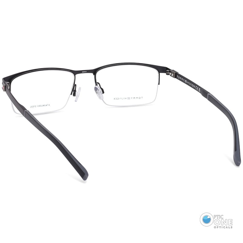 The half-rim design keeps the frame light and gives it a sharp, professional style. The frame is made from stainless steel, which makes it strong but easy to wear all day. On the side, you’ll find the Tommy Hilfiger logo on the temples, showing off the brand’s iconic design.