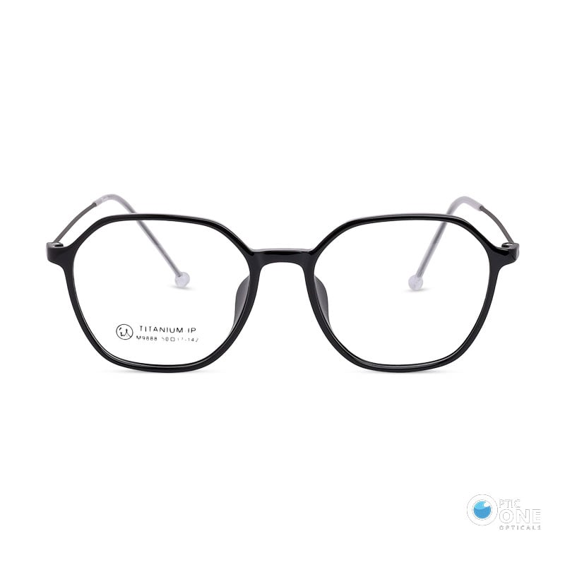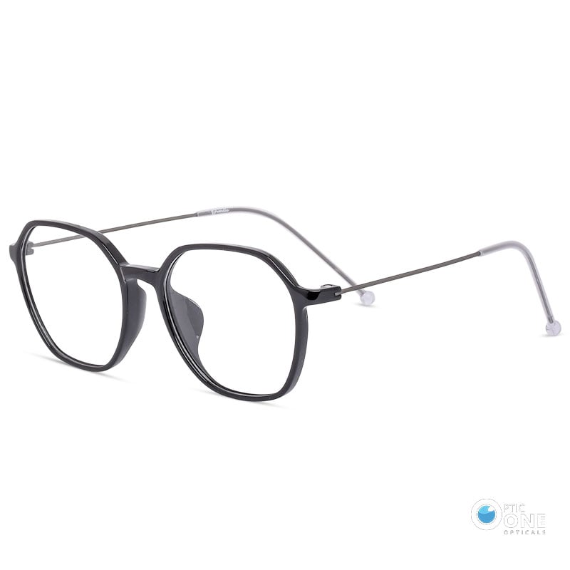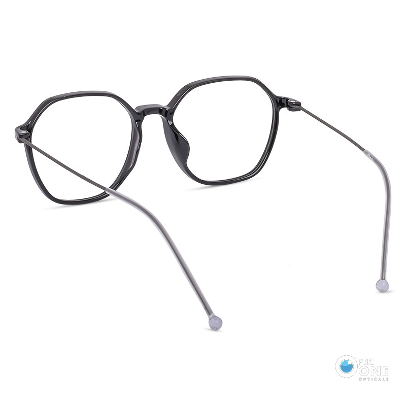 August 25, 2024Women’s Lightweight Slim Hexagonal Eyeglasses in Shiny Black Thin Metal Arms