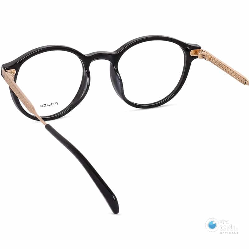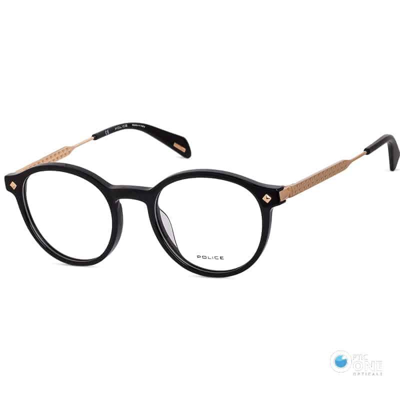 Police Eyewear VPLF10 Prince 5 | Unisex Round Eyeglasses Black-Gold