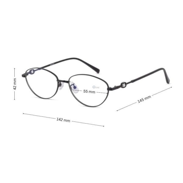 Step up your eyewear game with these elegant shiny black eyeglasses for women, designed to blend sophistication and comfort. The flattering oval shape with a soft cat-eye lift adds a graceful contour to your face, while the full-rim lightweight metal frame ensures durability without compromising on style.