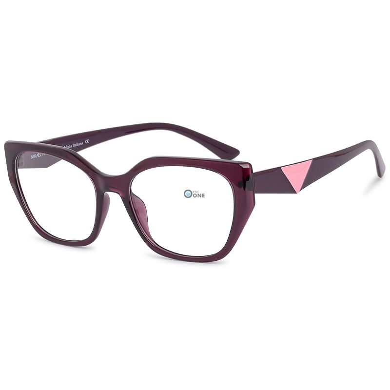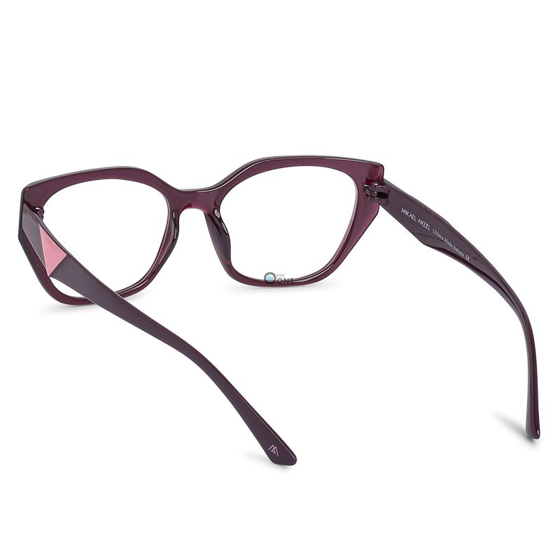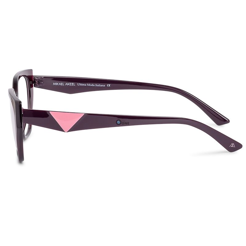 Crafted from premium-quality acetate, the glossy deep plum frame is elevated by a signature light pink triangular temple detail — reminiscent of iconic designer aesthetics. Perfect for elevating both everyday and statement looks, these eyeglasses offer a luxurious feel with lightweight comfort.
