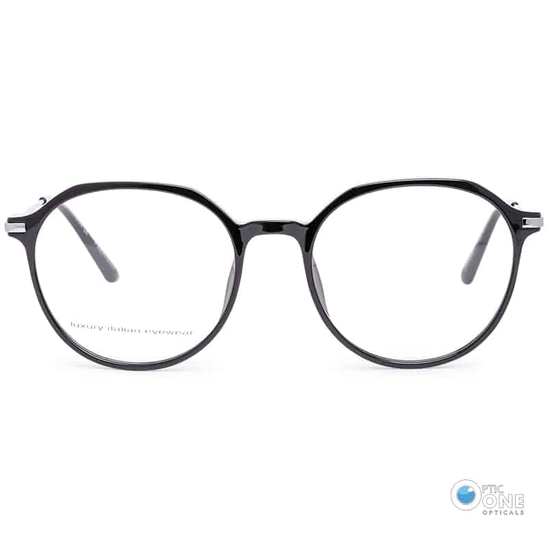 Women’s Eyeglasses Slim Acetate Round Glasses with Thin Metal Arms | Shiny Black