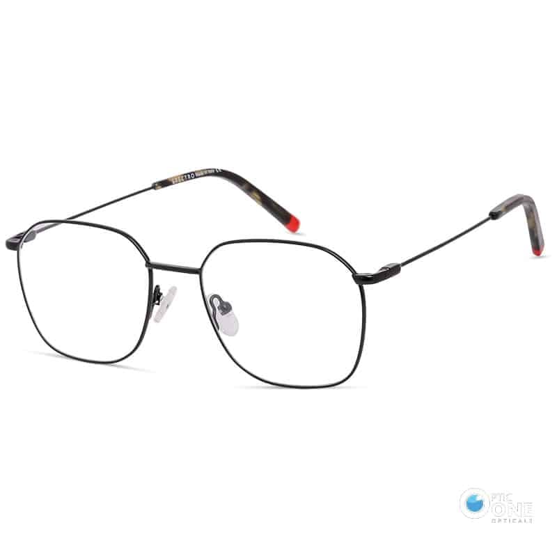 The slim black frame is accented with tortoiseshell temple tips and a bold red end touch, adding a subtle hint of personality. Designed for all-day comfort, the adjustable nose pads provide a snug and secure fit for any face shape. These frames are prescription-ready, perfect for both vision correction and everyday style.