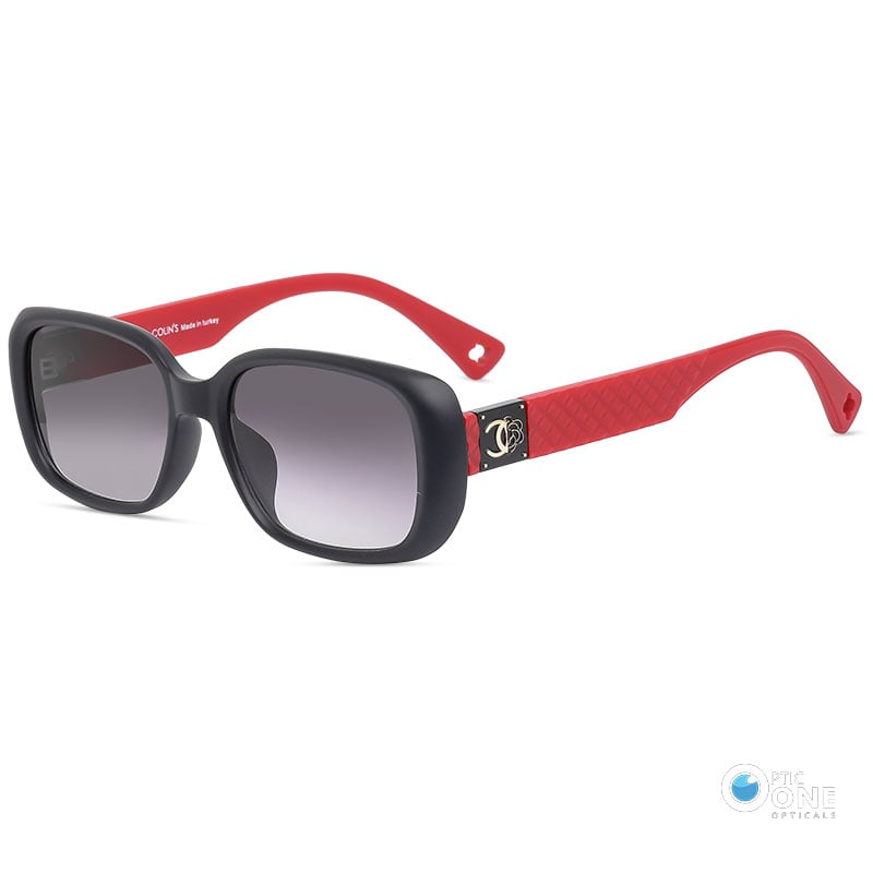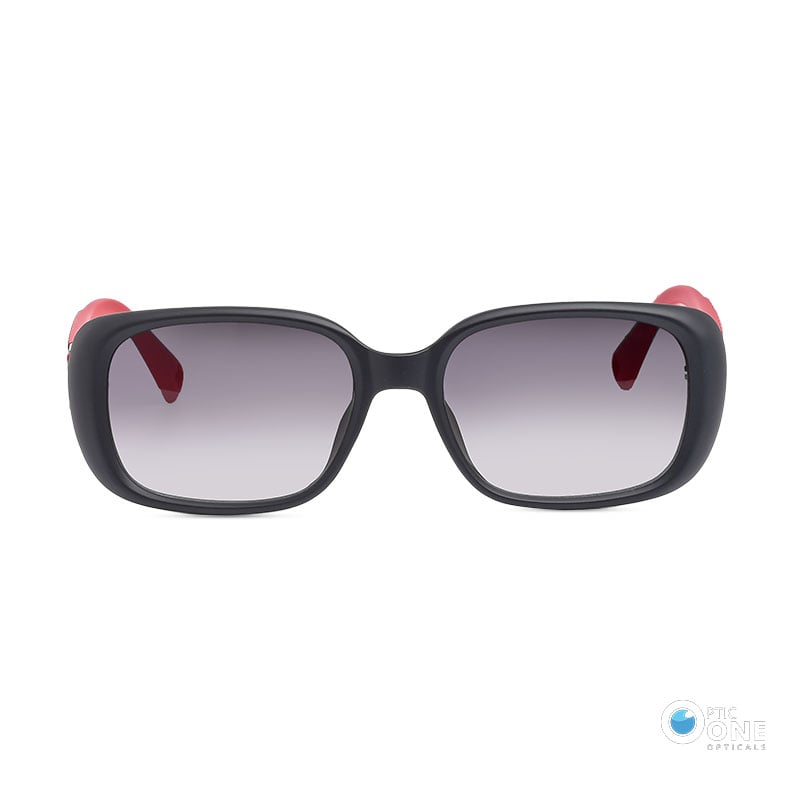 August 11, 2024Women’s Stylish Sunglasses – Matte Black/Red Frame, Gradient Gray Lenses